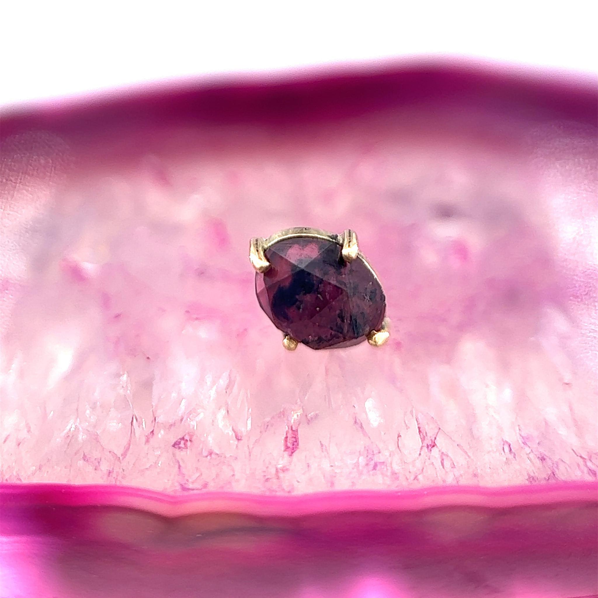Indulge in the regal splendor of Mettle & Silver’s Winza Ruby Sapphire Oval, a breathtaking display of gemstone allure and artisanal mastery. This exquisite pressfit end showcases a unique 6mm x 4mm oval-shaped rose-cut genuine ruby sapphire, its vibrant crimson hues glowing from within an intricate four-prong setting crafted from lustrous 14k solid yellow gold.