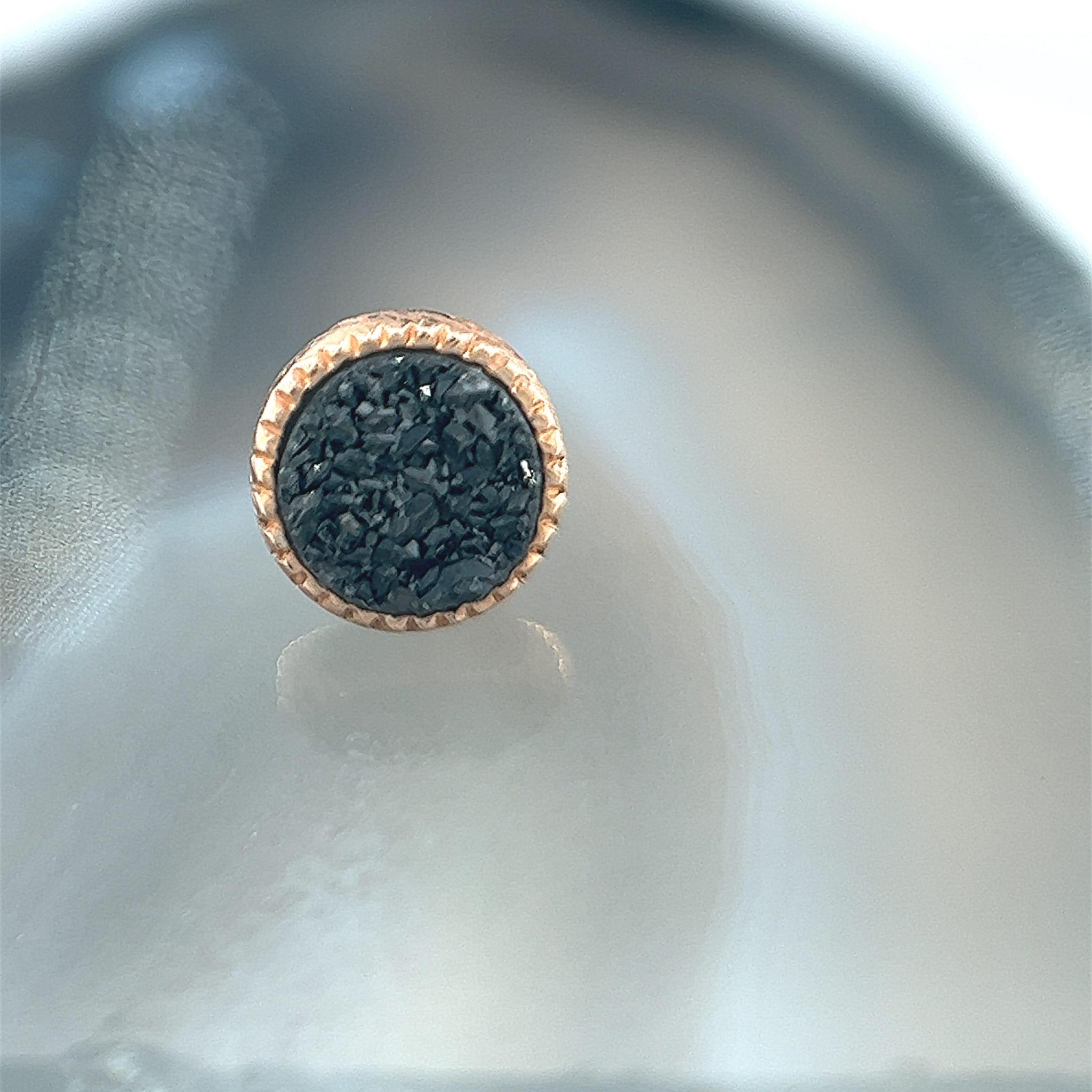 Presenting the 5mm Grisant Cup Druze Quartz Blk by Auris, an exquisite threadless jewelry piece meticulously crafted in 14k solid rose gold. This elegant end showcases a 5mm Druze Black Quartz, featuring a very elegant and unique cut and setting.