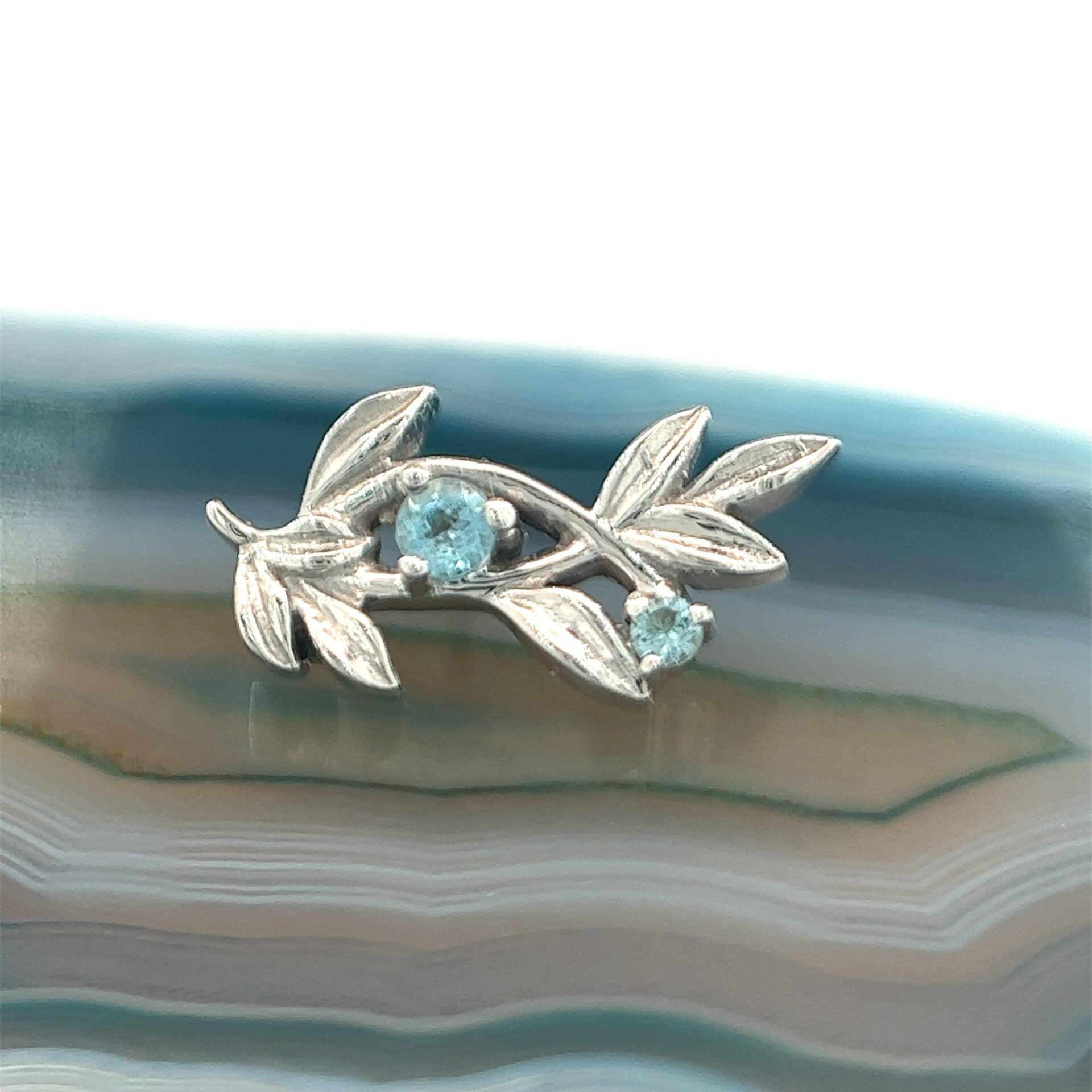 Adorn yourself in nature’s beauty with the Jessamine body jewelry by BVLA. Two dazzling genuine Swiss blue topaz stones, a 1.75mm and 1.25mm round, are prong-set among intricately crafted leaves and branches. The larger topaz peeks through the center, its vivid blue hue resembling a cloudless sky. The smaller accent stone lends a delicate pop of sparkle. Handcrafted in 14k solid white gold with BVLA’s signature satin finish. Measuring 11x5mm, this stunning 16g/ 18g threaded piece is perfect for helix or forward helix piercings. The Swiss blue topaz promotes inner peace and amplifies positive energy. For the earthy bohemian, Jessamine embraces your style with an ethereal mix of glamour and organic elegance. A branch you’ll adore forever.