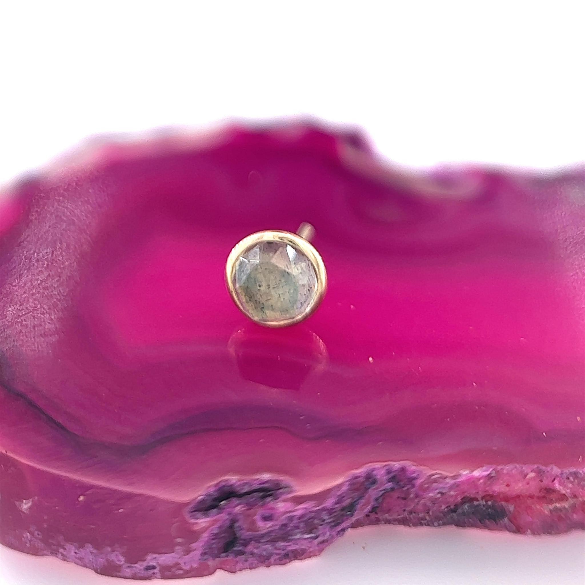 Step into the world of radiant elegance with the Cup Set 2.5mm Rose Cut Labradorite. This exquisite threaded end by BVLA is a captivating fusion of sophistication and the natural world’s ethereal beauty. At its core, a mesmerizing 2.5mm rose cut Labradorite gemstone takes center stage, cradled within a luminous 14k solid yellow gold cup setting. The Labradorite’s shimmering hues dance like the elusive play of Northern Lights, creating an enchanting aura that sets this piece apart. BVLA’s unwavering dedication to precision and craftsmanship ensures that this end is more than just jewelry; it’s a testament to your unique style and appreciation for the enchanting charm of gemstones. Effortlessly change and clean this piece, as convenience seamlessly blends with timeless elegance. Imagine yourself wearing this exquisite adornment, a touch of refined luxury that transcends the ordinary. As you don this Cup Set Labradorite, you step into a world where sophistication and nature’s beauty unite, creating an aura that captivates hearts and minds alike. This threaded end isn’t just an accessory; it’s a statement of your individuality and your profound connection to the wonders of the natural world. Allow it to adorn you, and let its captivating grace infuse your look with an elegance that truly shines.