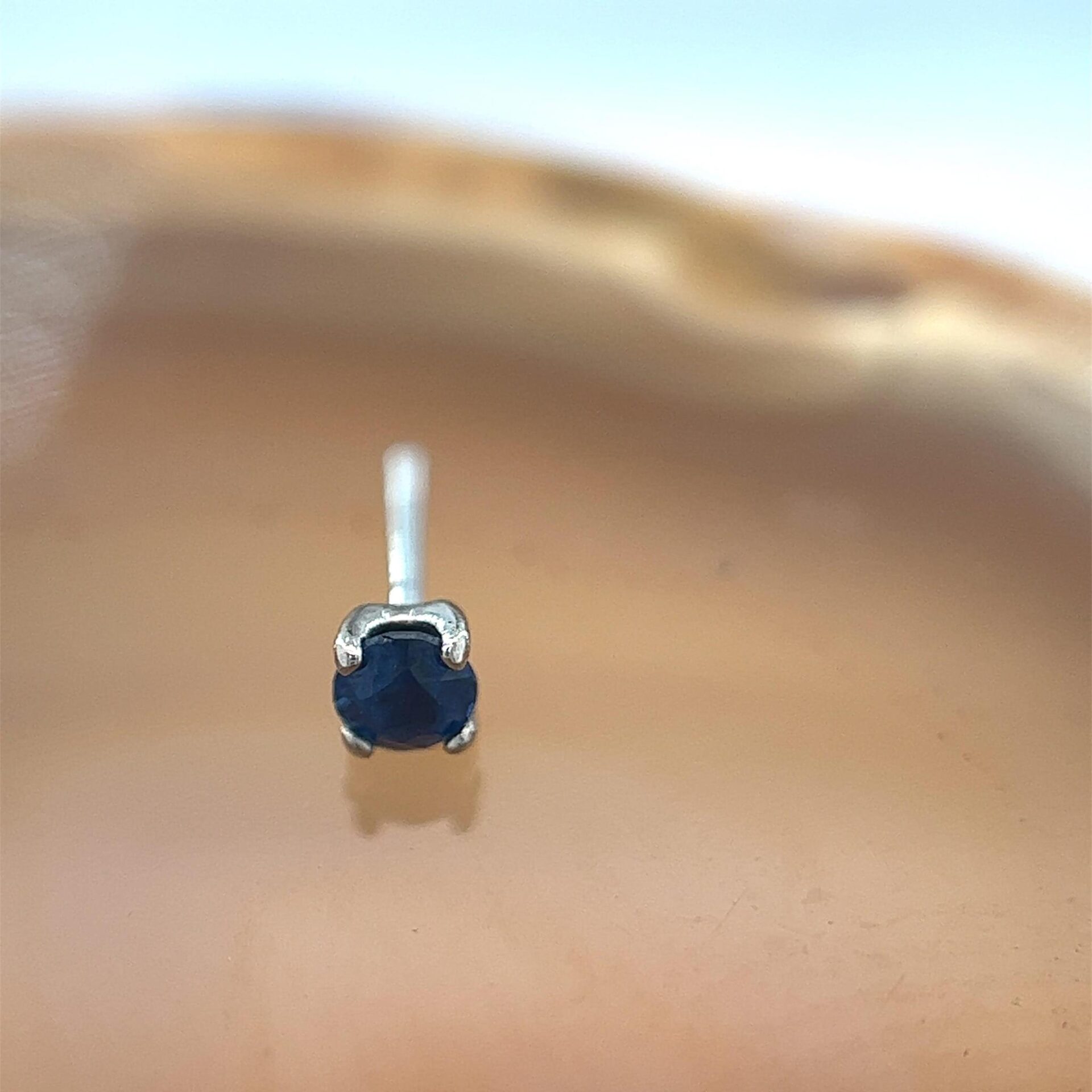 Introducing the epitome of elegance, the 2.5mm Tiffany Set Blue Sapphire in 18k solid White Gold by Anatometal. This exquisite threadless jewelry piece features a 2.5mm genuine faceted Blue Sapphire, impeccably cradled in a classic 4-prong Tiffany setting.